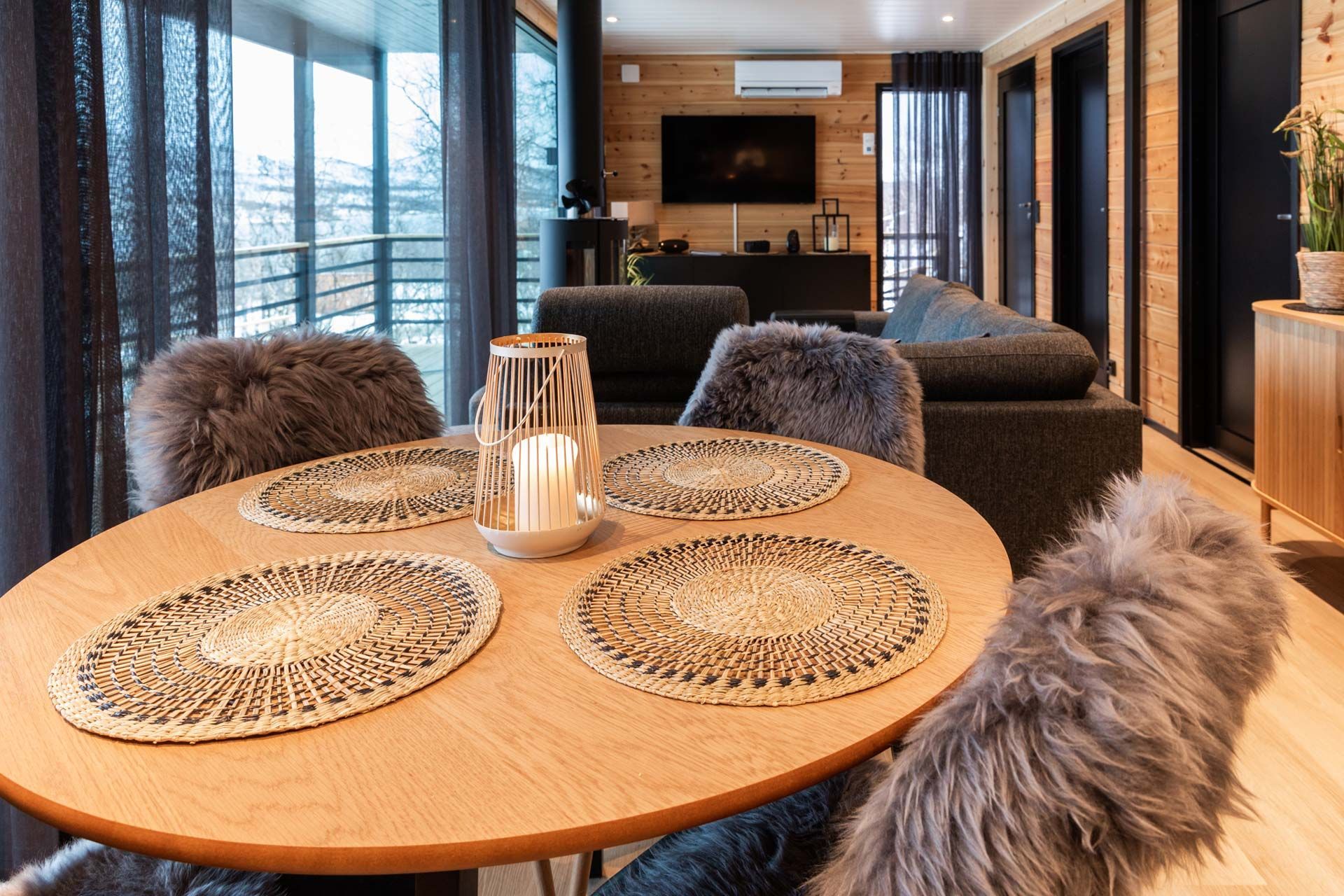 Vuonna 2022 valmistunut Saanan Lumous sijaitsee Saanatunturin juurella, noin kilometrin päässä lähimmästä kaupasta. Kuudenkymmenen neliömetrin kokoisessa mökissä on kaksi makuuhuonetta ja tupakeittiö, sauna, pesuhuone, wc, katettu terassi sekä varasto. Mökin ikkunat on lämmitetty, joten ne pysyvät kirkkaina ankarimmillakin talvisäillä.